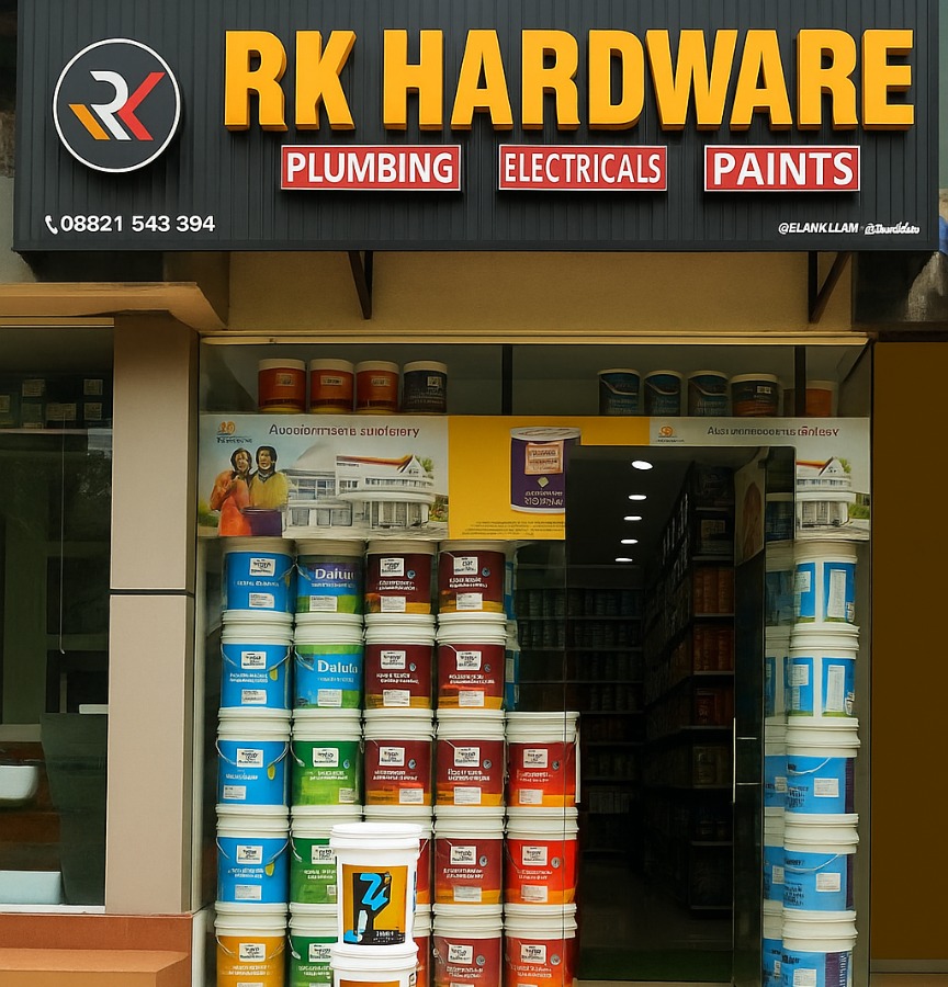 At RK Hardware, we provide top-quality hardware, plumbing, sanitary, electrical, and paint products under one roof. Our team ensures reliable service, expert guidance, and durable materials for every project. Whether you’re building, repairing, or upgrading, we deliver solutions that meet your needs with trust, quality, and competitive pricing — making your work easier and stronger.